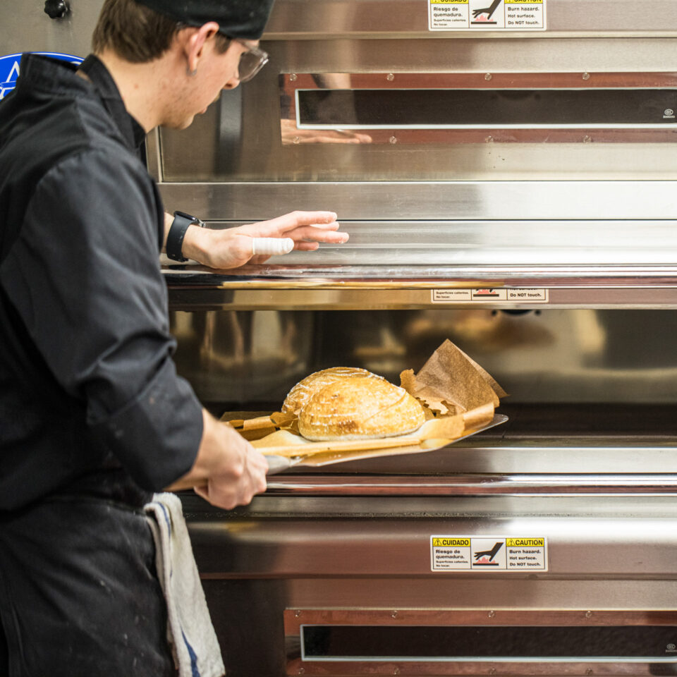 Each day begins early in the kitchen. Doughs are mixed, shaped, and baked in small batches, moving from oven to shelf to case. As the day unfolds, breads, pastries, and desserts are set out in rhythm, made fresh and finished by hand.